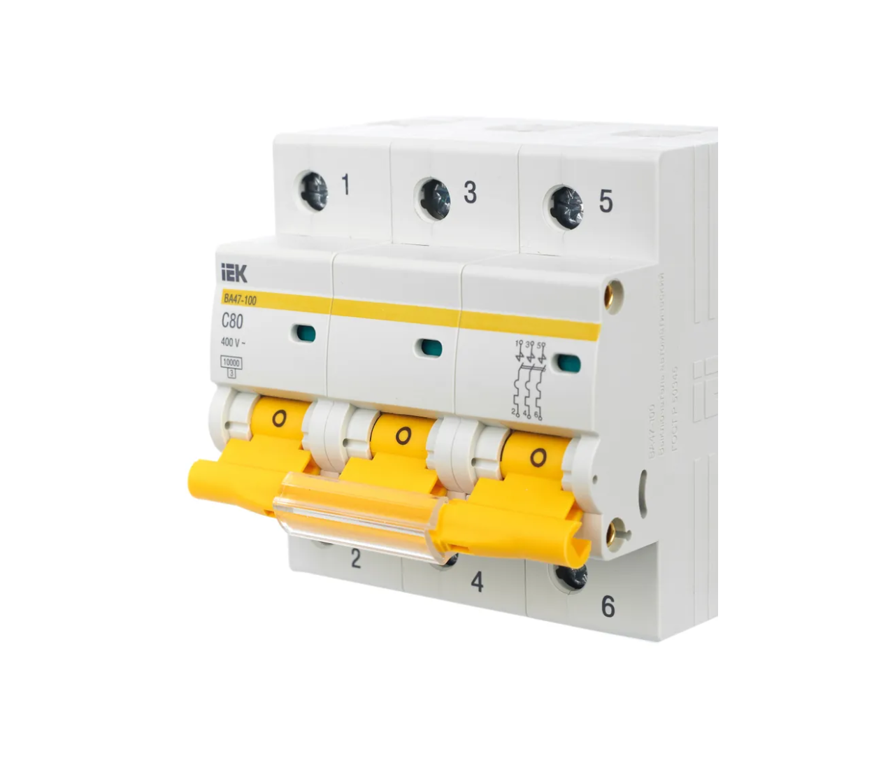 Автоматический выключатель модульный IEK ВА47-100 трехполюсный 3п 80А C 10кA AC/DC (перемен./постоян.) (MVA40-3-080-C)