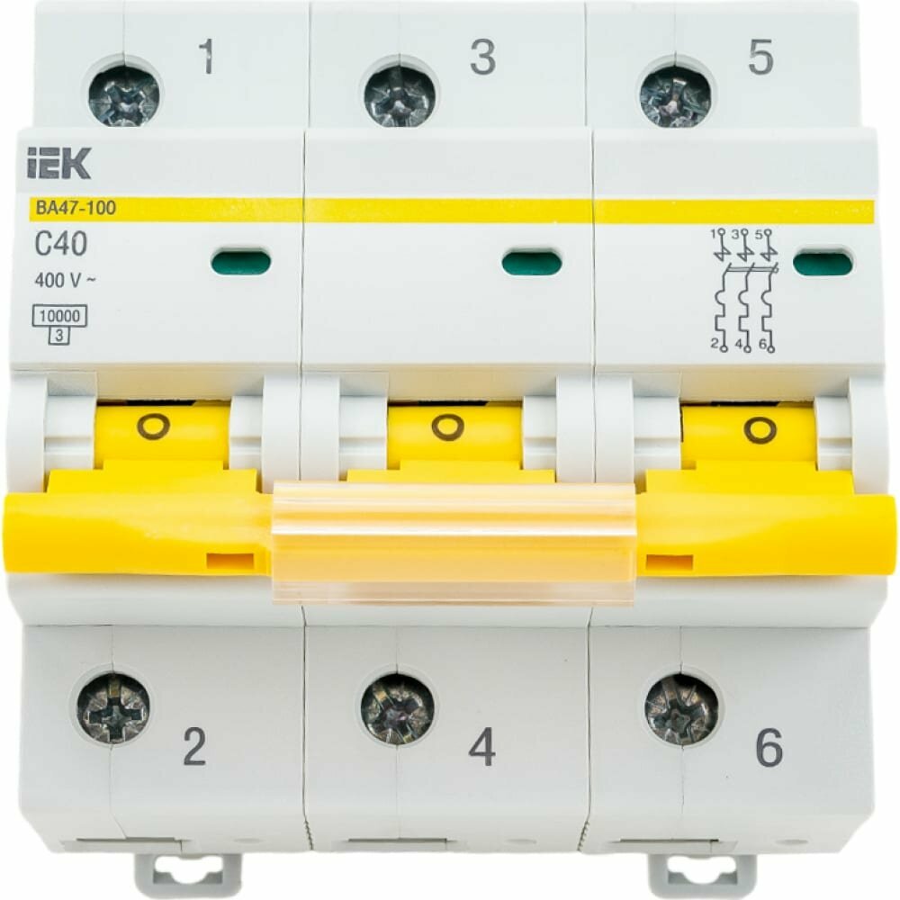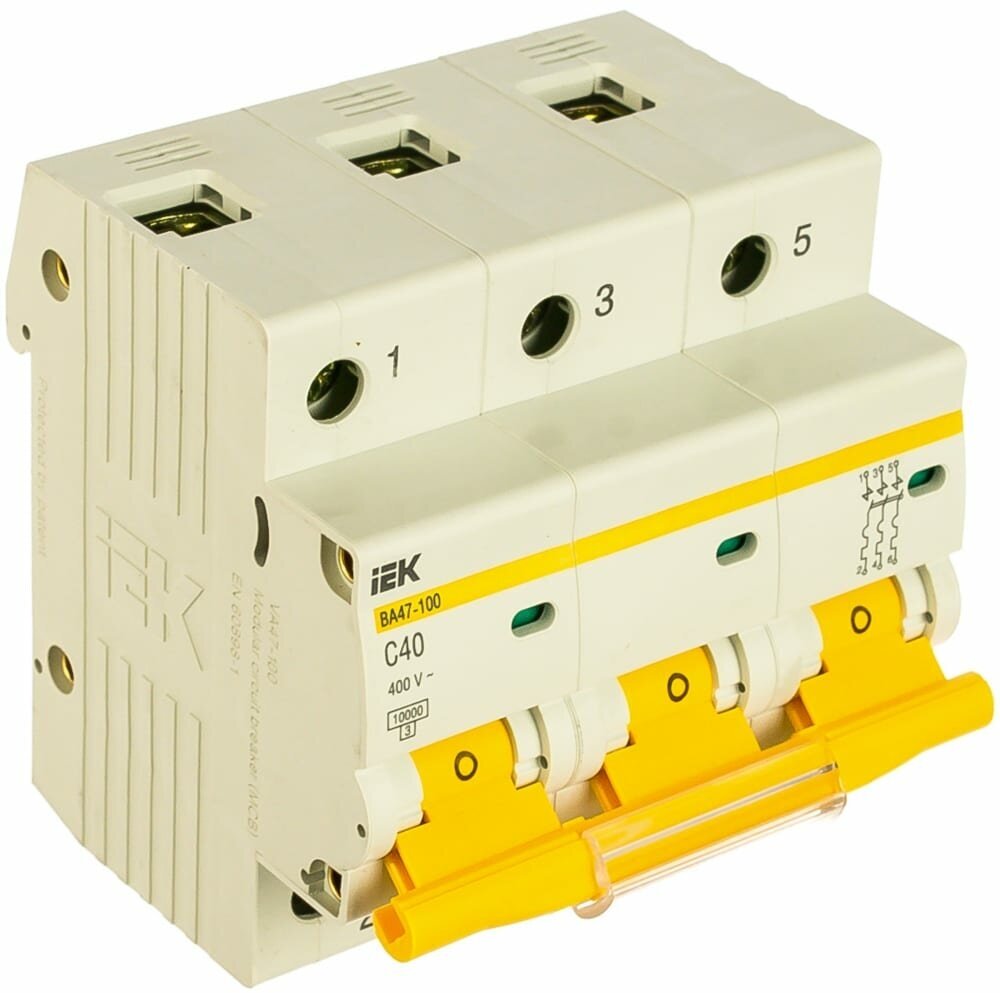 Выключатель автоматический модульный 3п C 40А 10кА ВА47-100, IEK MVA40-3-040-C (1 шт.)