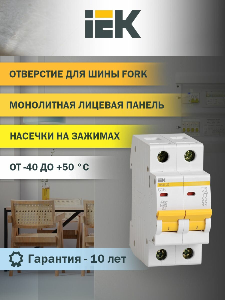 Выключатель автоматический модульный 2п B 10А 4.5кА ВА47-29 IEK MVA20-2-010-B