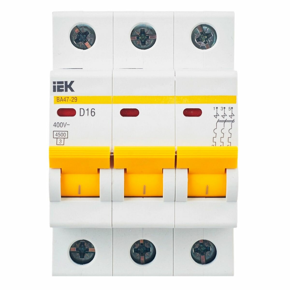 Выключатель автоматический модульный 3п D 16А 4.5кА ВА47-29 IEK MVA20-3-016-D (1 шт)