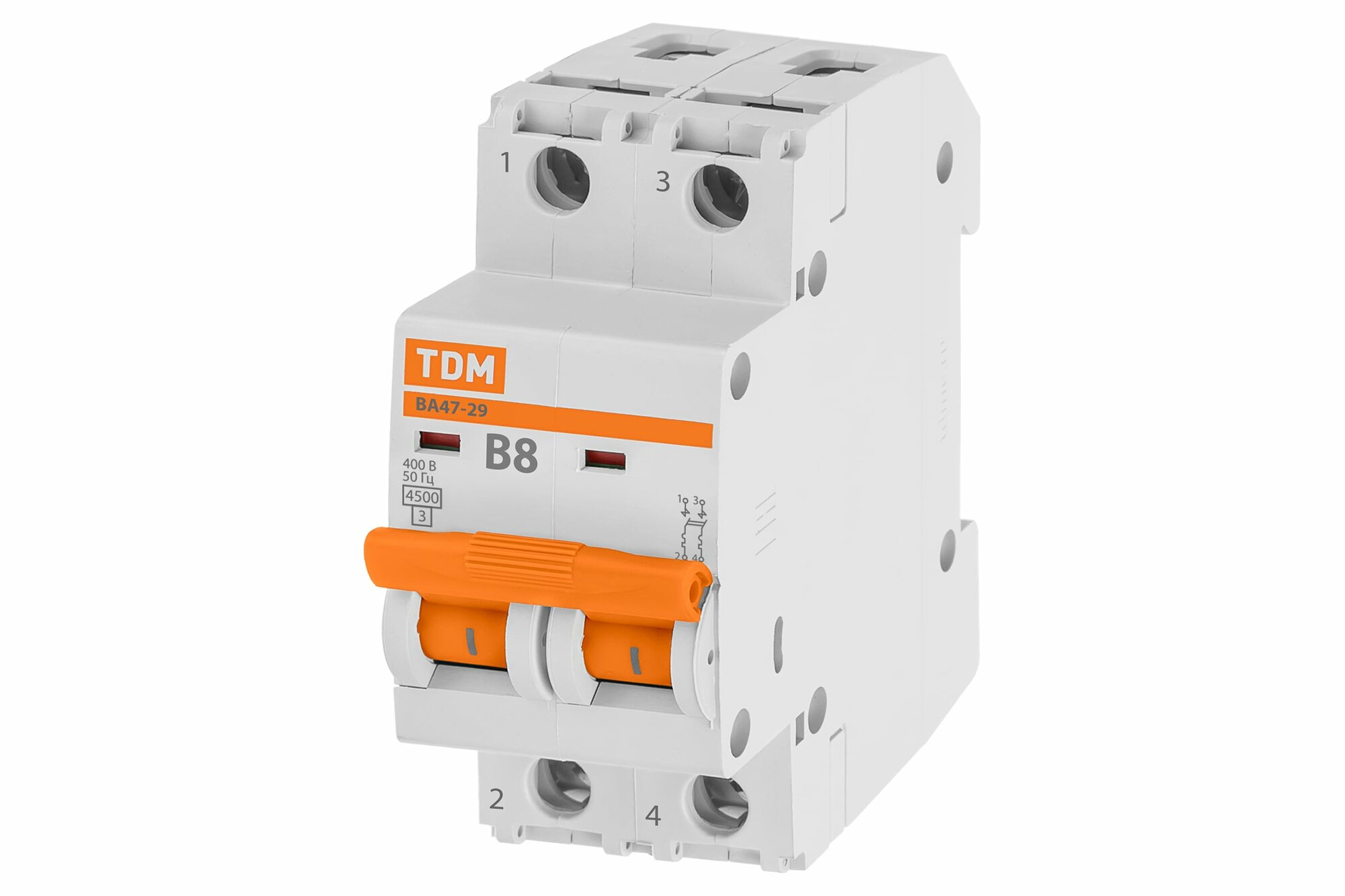 Автоматический выключатель TDM Electric ВА47-29 2Р 8А 4,5кА х-ка В .