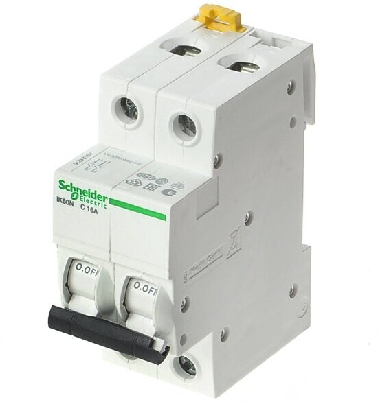 Выключатель автоматический модульный 2п C 16А 6кА iK60 Acti9 SchE, SCHNEIDER ELECTRIC A9K24216 (1 шт.)