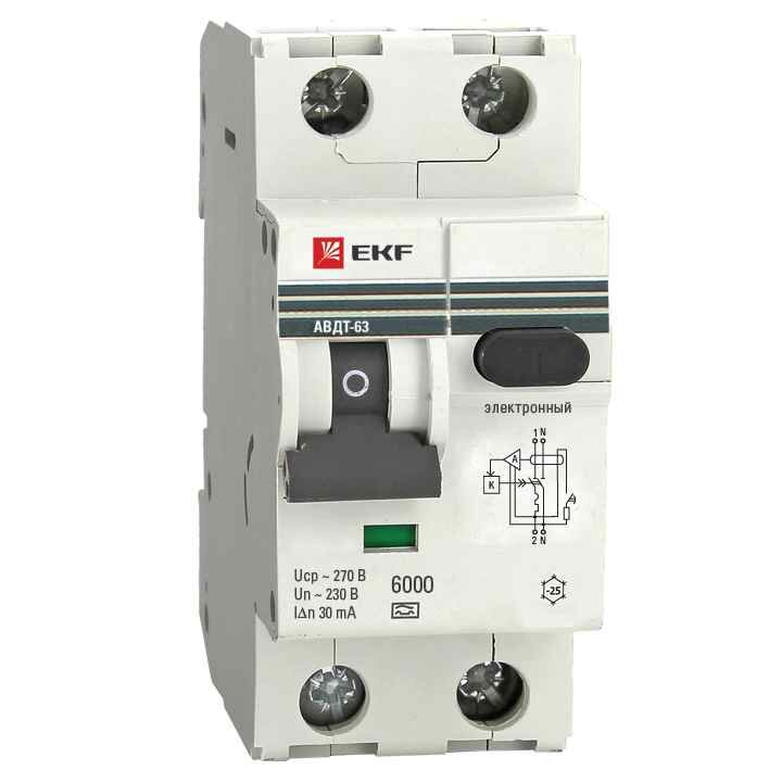 Дифференциальный автоматический выключатель EKF PROxima АВДТ-63 25А, С, 30мА, тип A, 6кА, электронный