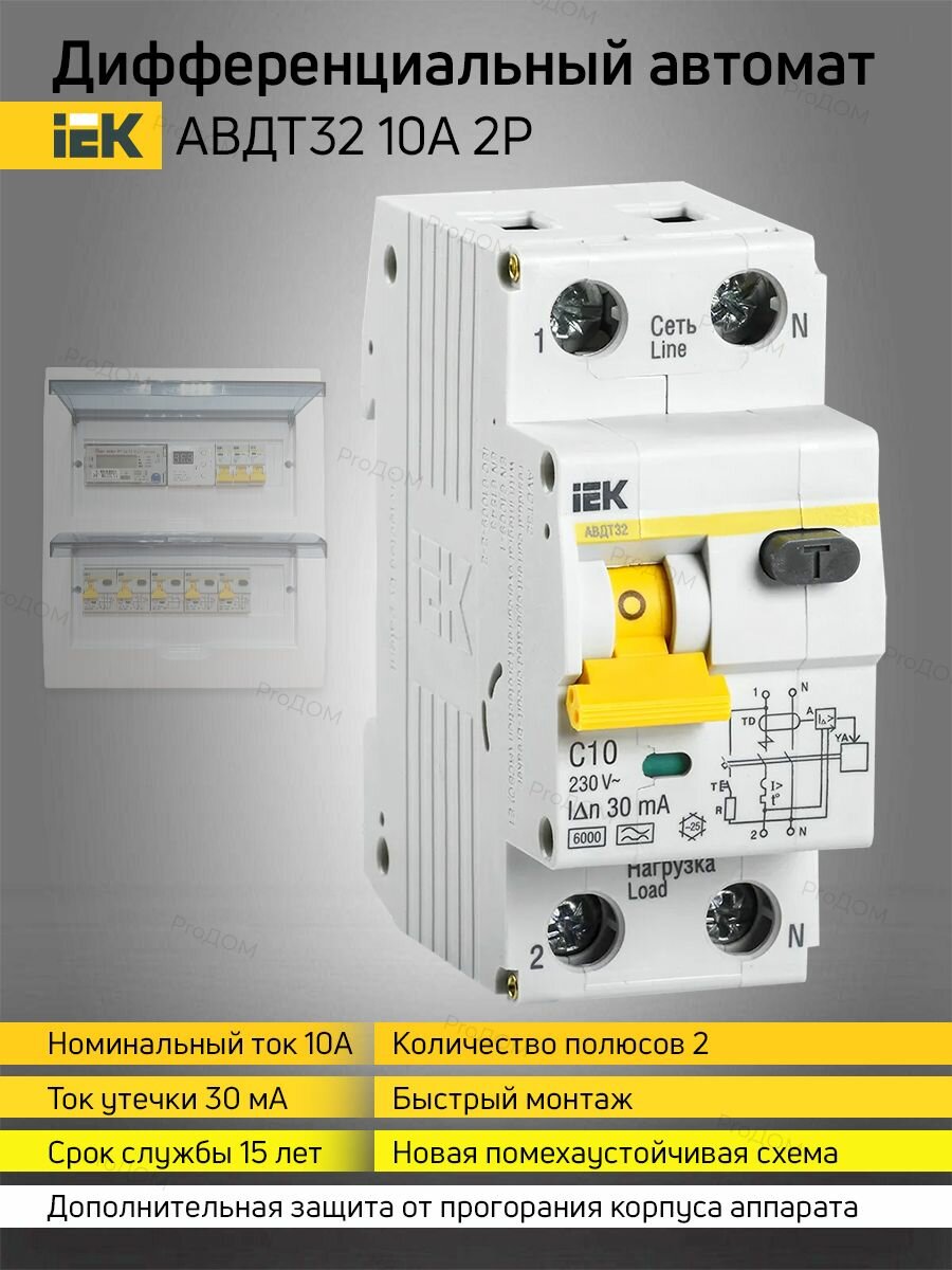 Дифференциальный автомат IEK АВДТ32 2П 30 мА C 6 кА A электронный 10 А 30 мА