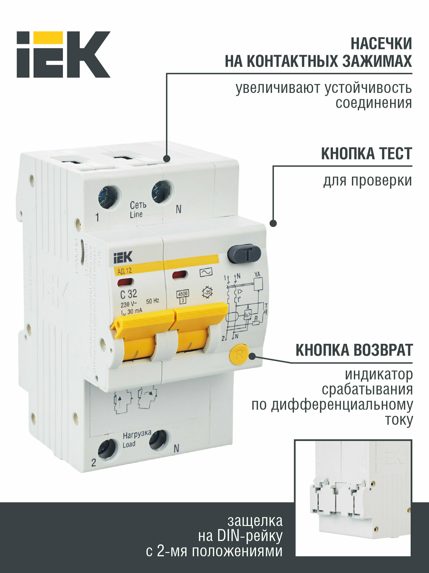 Выключатель автоматический дифференциальный IEK АД-12 2п 32А 30мА С (MAD10-2-032-C-030)