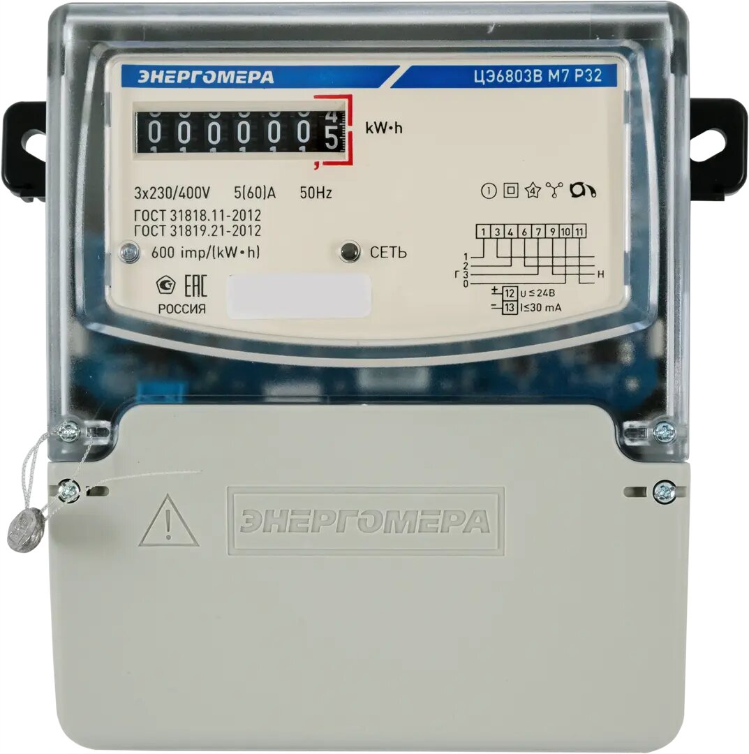 Купить Счетчик электроэнергии трехфазный однотарифный Энергомера ЦЭ6803В 5-60А М7 Р32 5(60) А без привязки к региону однотарифный
