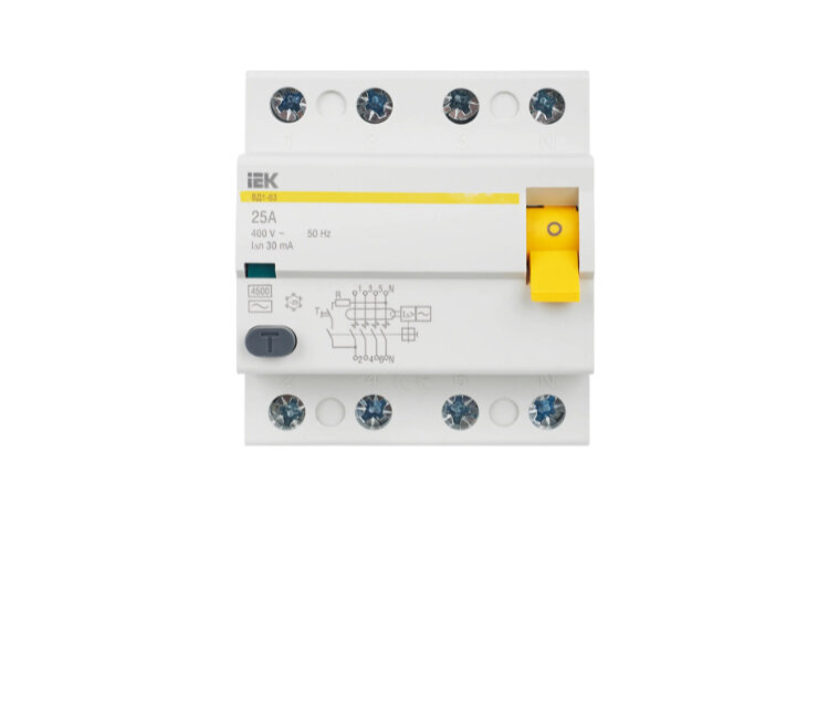 УЗО IEK Karat ВД1-63 25А 30 мА 4P тип АС 4,5 кА (MDV10-4-025-030)