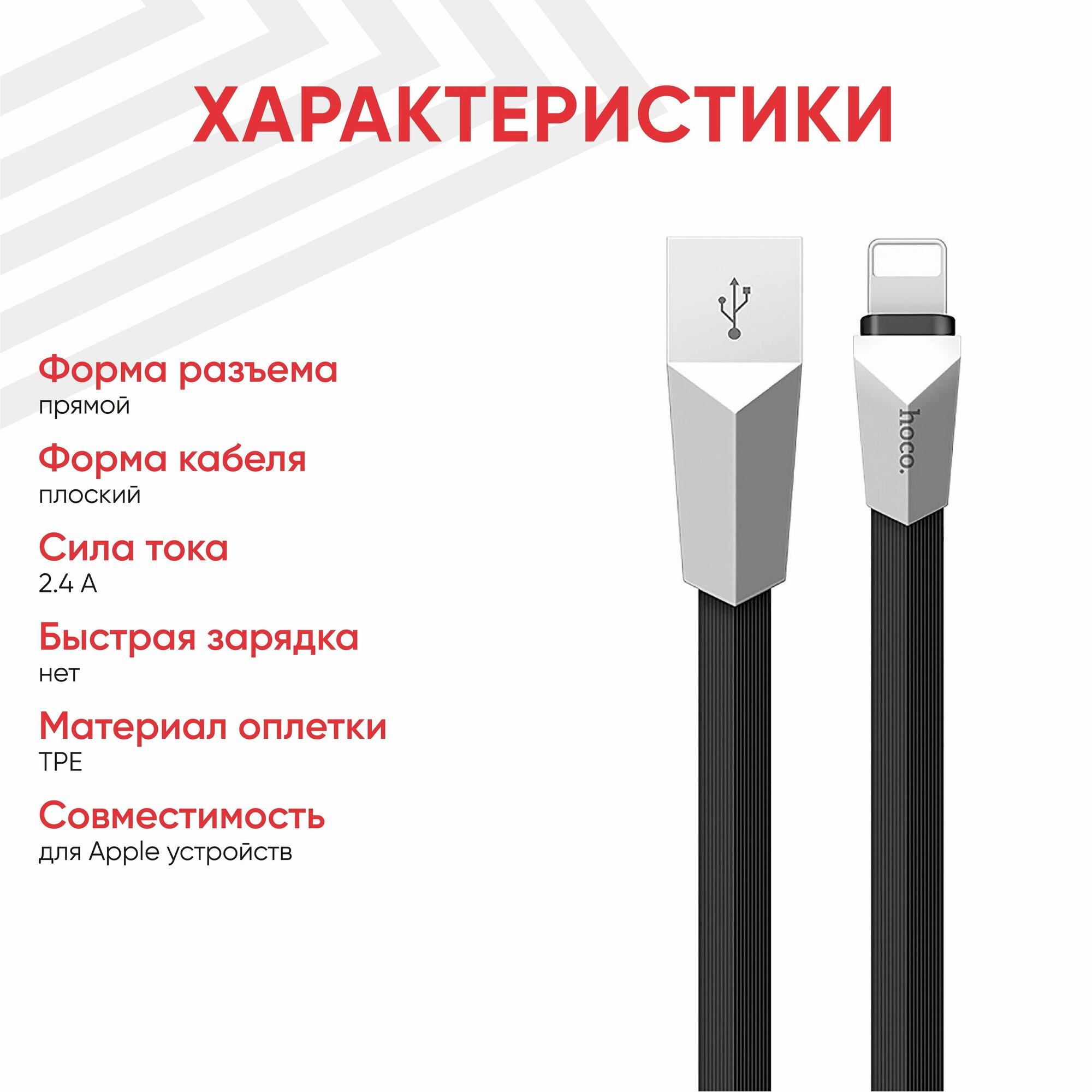 | Разъемы кабеля | USB 2.0 (am) - Apple Lightning (m) |