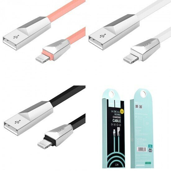 Кабель зарядки и синхронизации данных USB USB HOCO x4 Zinc для Lightning, 2.4 A, длина 1.2 м, черный