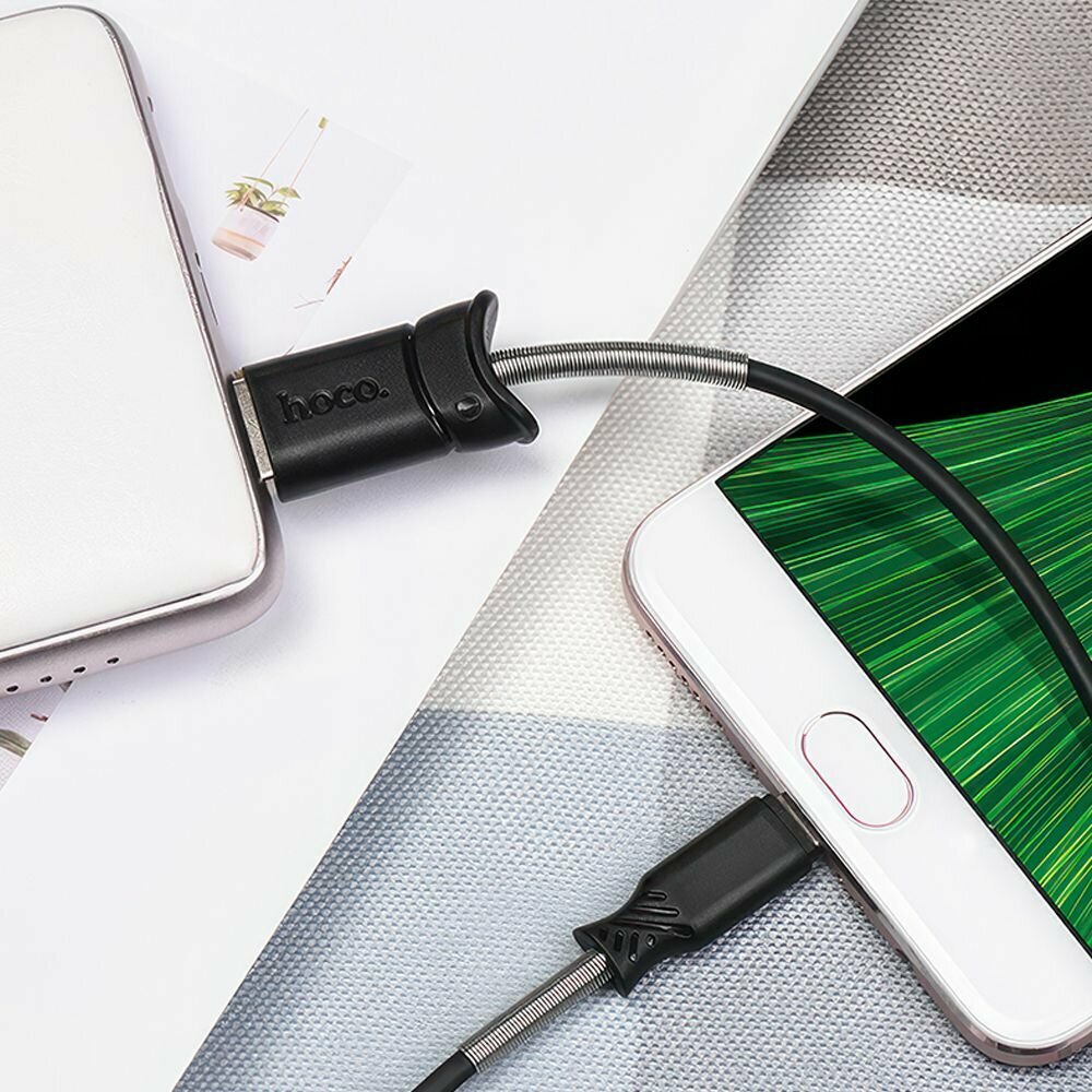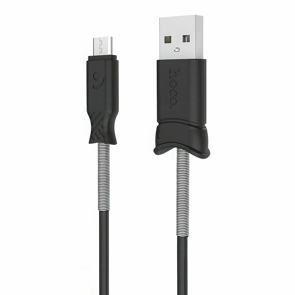 Дата-кабель Hoco X24 Pisces USB-MicroUSB (с пружиной) 1 м, черный