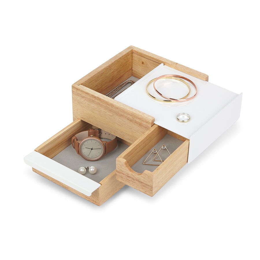 Шкатулка для украшений Umbra Mini Stowit, белая-дерево