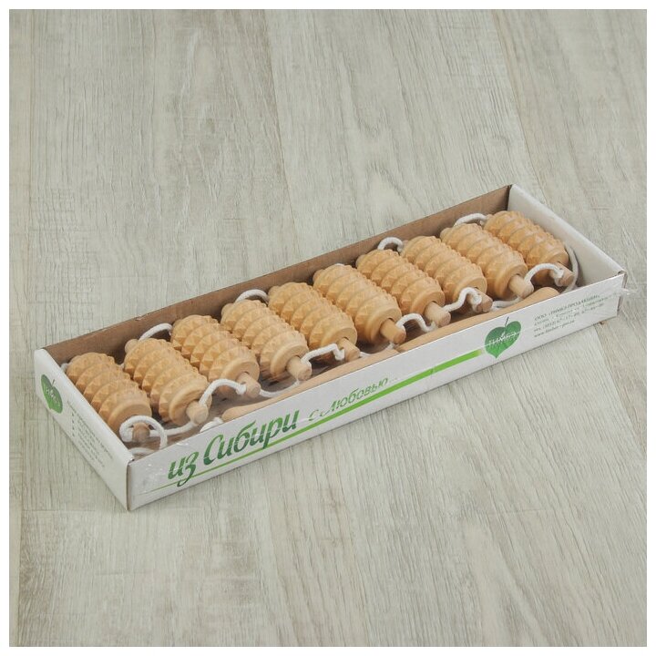 Массажёр-лента деревянный, роликовый, зубчатый, 10 звеньев