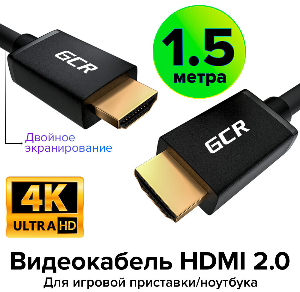 Кабель 1.5м HDMI 2.0 GCR 4K UltraHD HDR 3D 18 Гбит/с для PS4 PS5 Smart TV двойное экранирование (GCR-HM401) черный