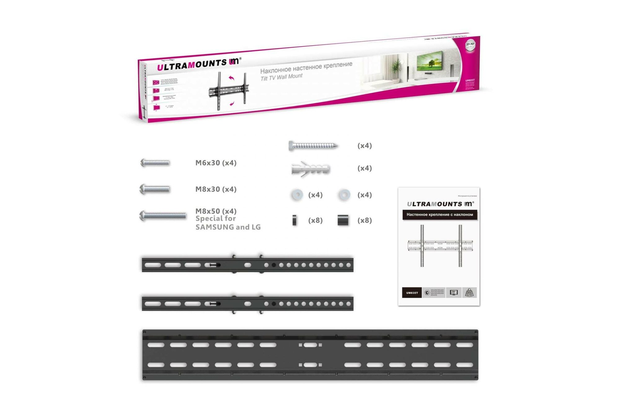 Для телевизоров Ultramounts Кронштейн Ultramounts UM835T, для ТВ, наклонный, 37"-75", 50 мм от стены, черный