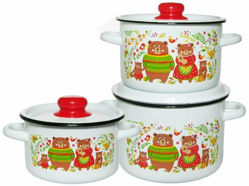 Набор эмалированных кастрюль Мишки (1,5л+2,9л+4,5л), Череповец.