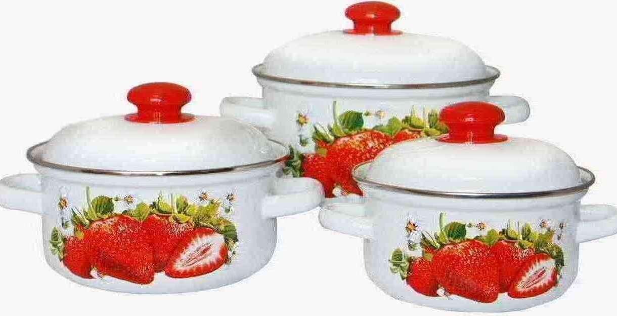 Набор посуды эмаль №007 сочная клубника (2л; 3л; 4,5л) лысьва