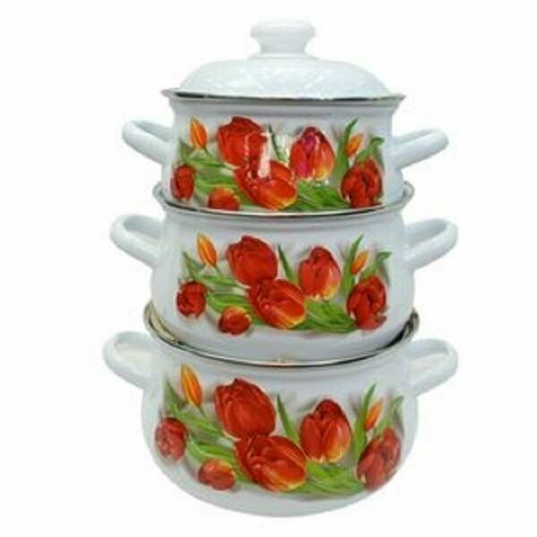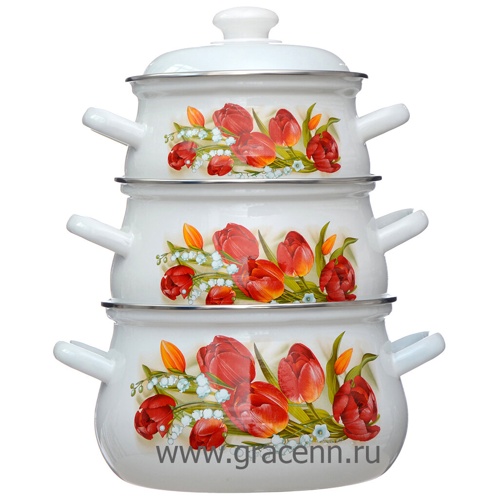 Купить "Ласковый май" С-129АП2/4ЛМ, Набор эмалированных кастрюль (кастрюли 2,0 л; 3,0 л; 4,5 л с крышками)
