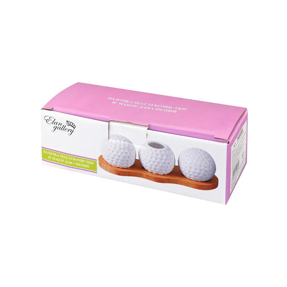 Купить Набор из вазочки под зубочистки, солонки, перечницы Elan Gallery "Сфера", на деревянной подставке