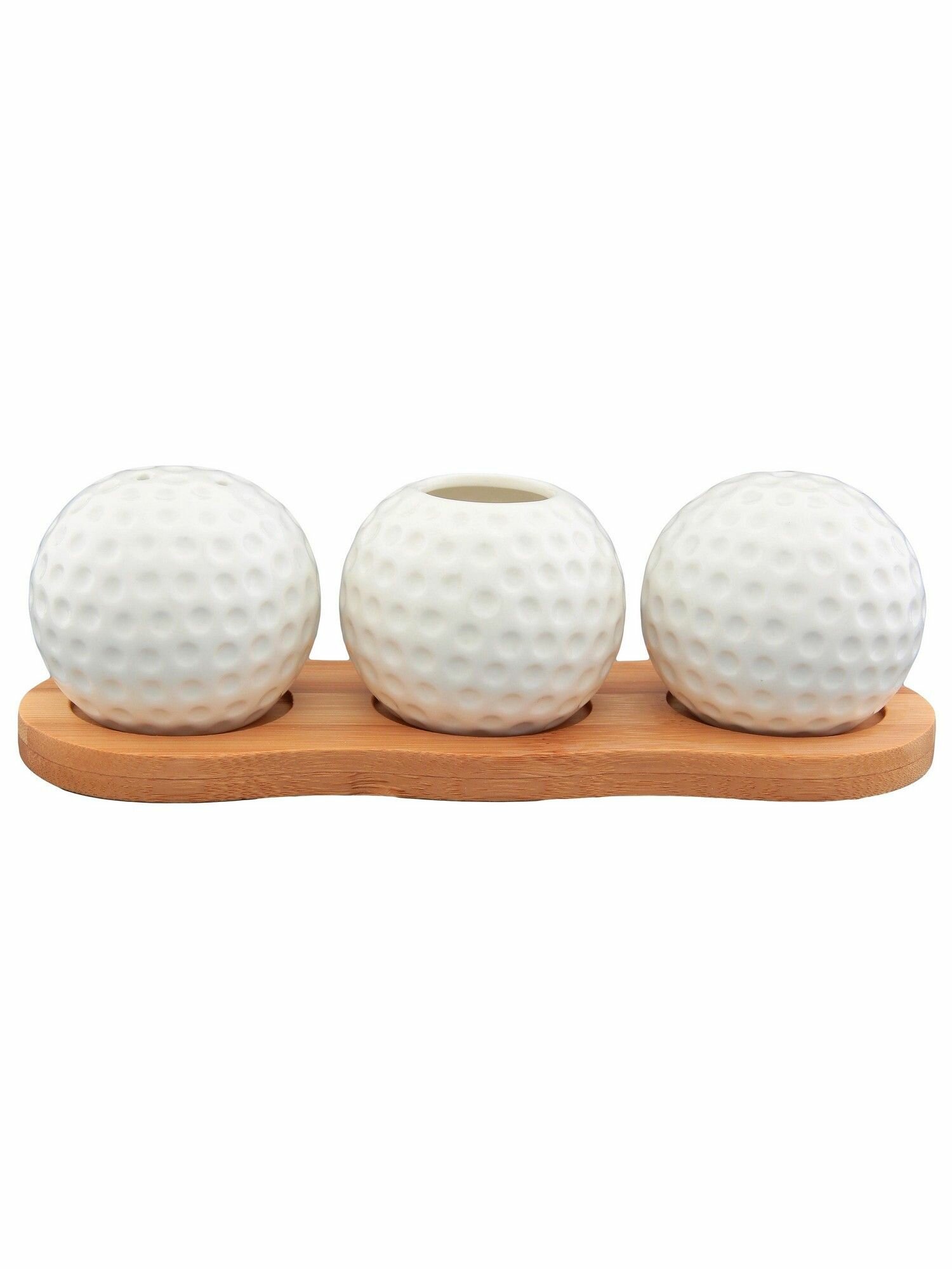 Вазочка под зубочистки + набор для специй 3 пр. 19,5*7*6 см 75 мл "Сфера" на дер. подст.