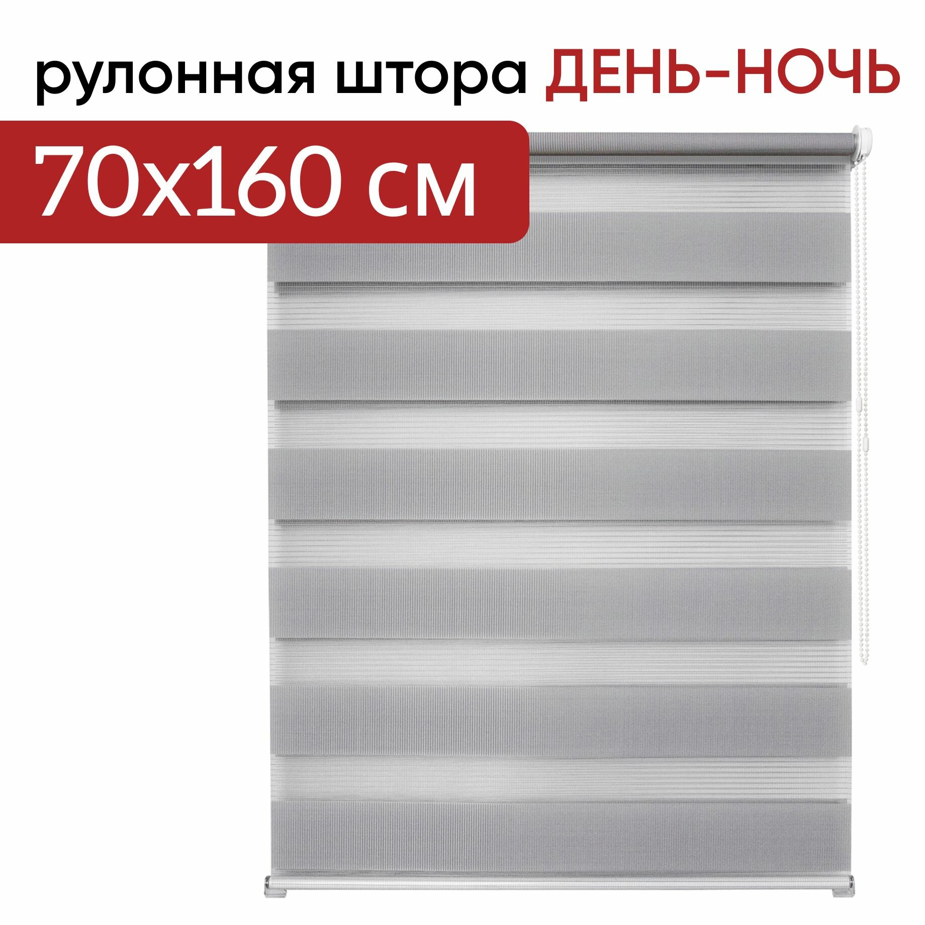 Рулонная штора УЮТ день ночь 160 смх160 см Канзас светло-серый, рольштора полиэстер, затемнение 60%