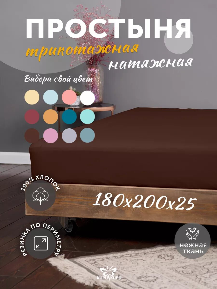 СохранитьПростыня на резинке Kupu-kupu VIOLETT трикотажная, шоколад 180x200х25 интересное: