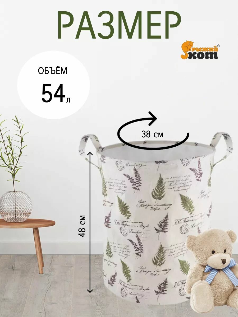 Корзина для белья Рыжий кот TLB-02, тканевая, 54 л 38 x 48 см, листья