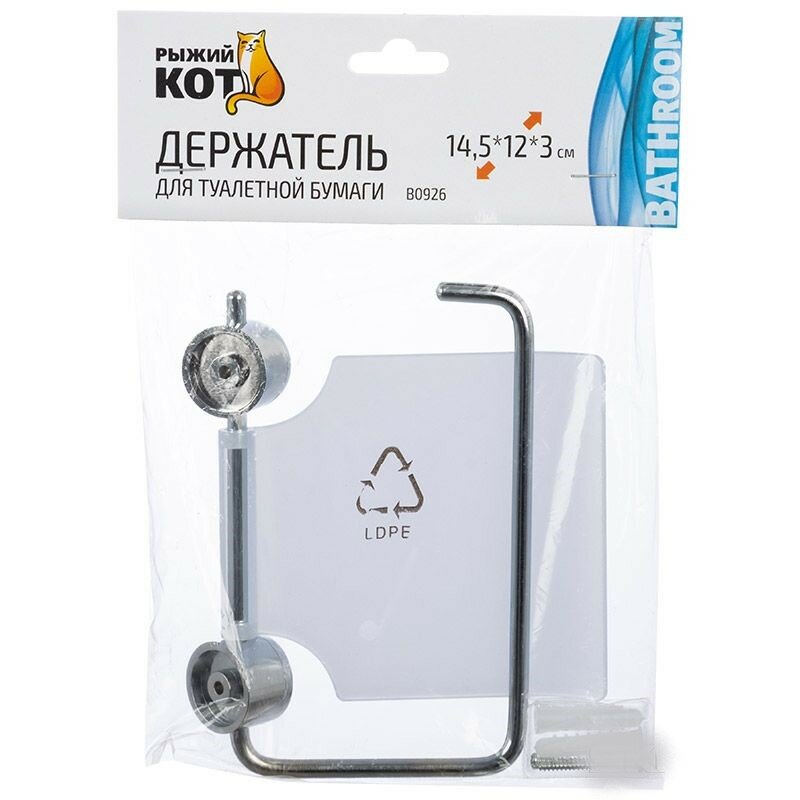 Держатель для туалетной бумаги, хром/пластик, крепление шуруп B0926, 2487 Рыжий Кот