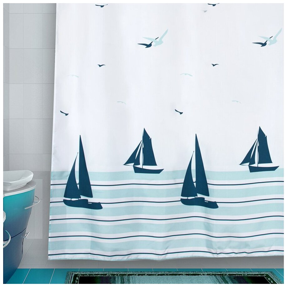 Купить Занавеска (штора) Barca для ванной комнаты тканевая 180х180 см., цвет синий и белый