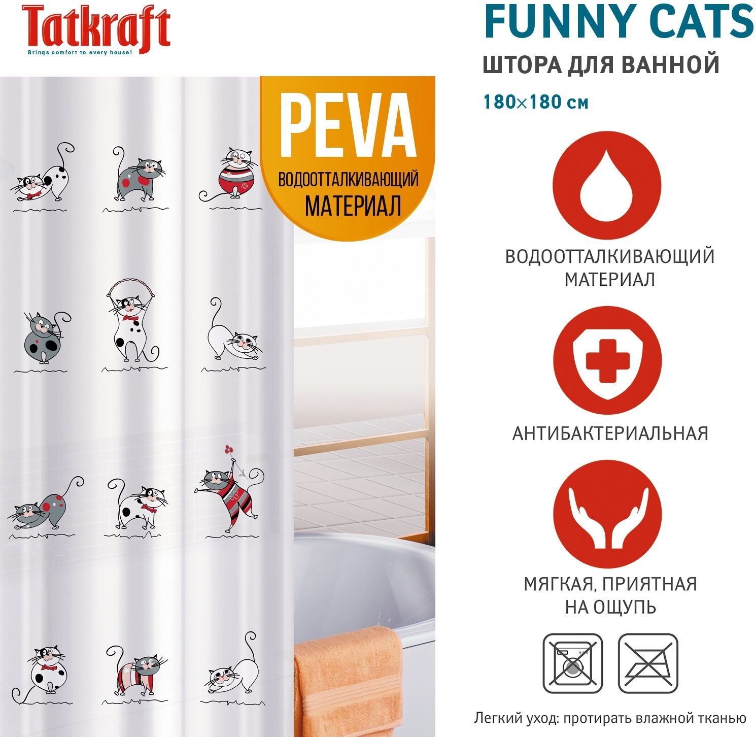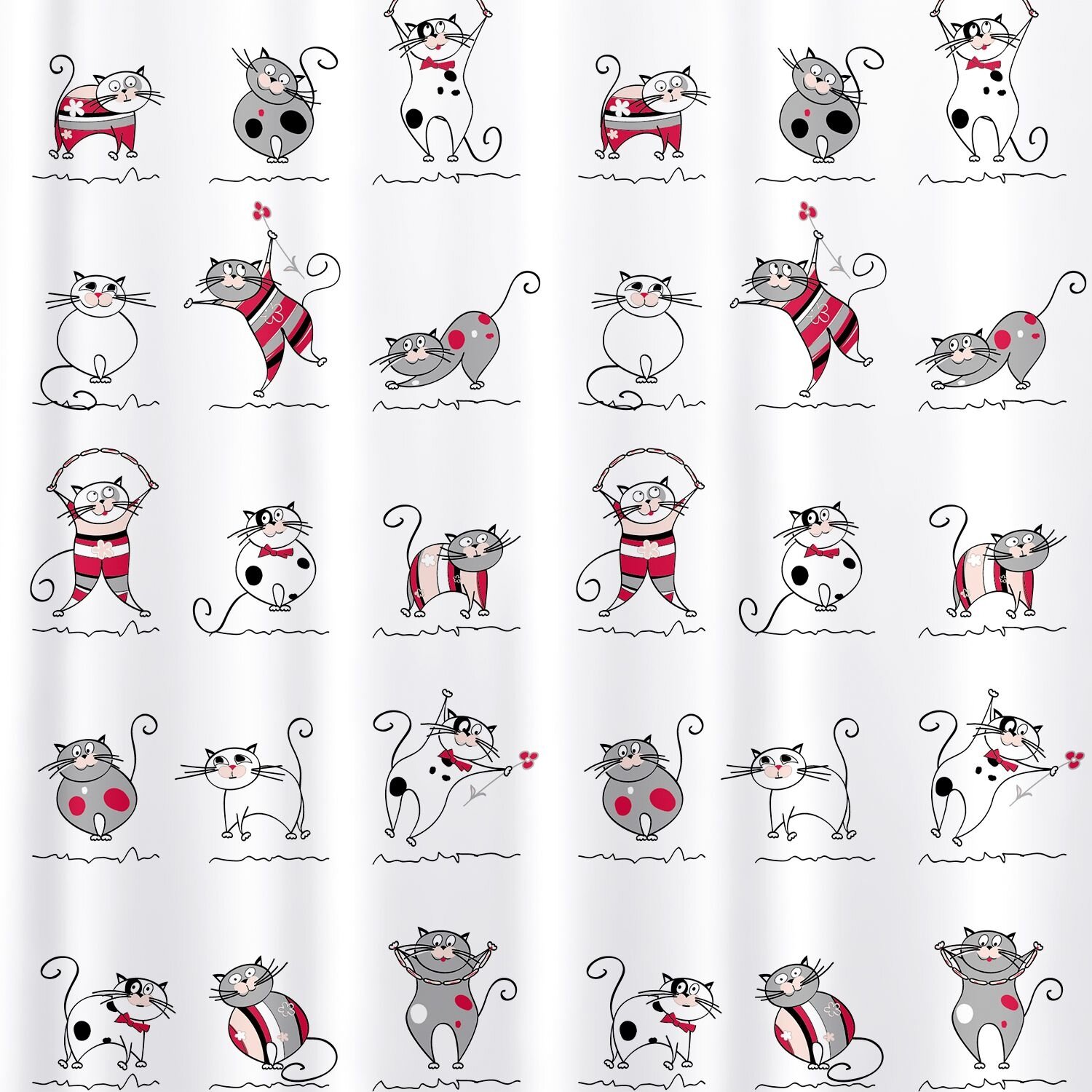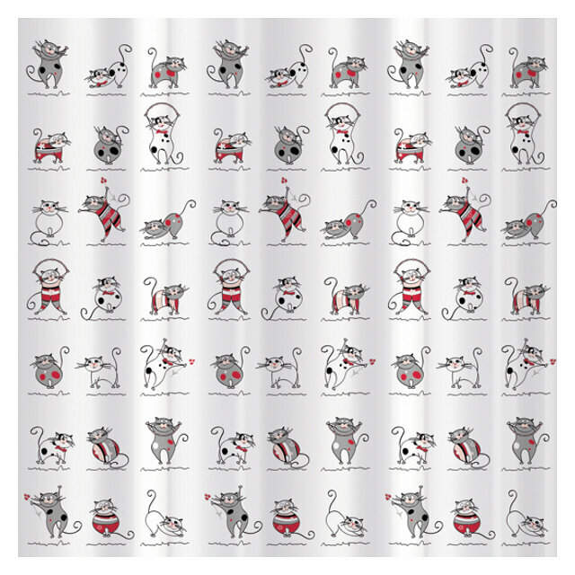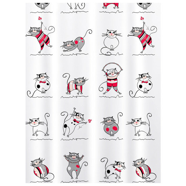 Tatkraft FUNNY CATS Штора для ванной комнаты, водонепроницаемый материал PEVA, с кольцами (12 шт)