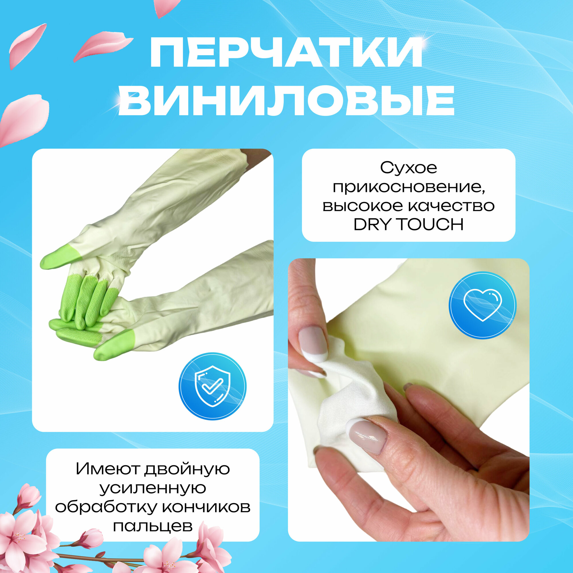 ST Family Перчатки виниловые для бытовых и хозяйственных нужд толстые с уплотненными кончиками пальцев и антибактериальным эффектом размер M Зеленые