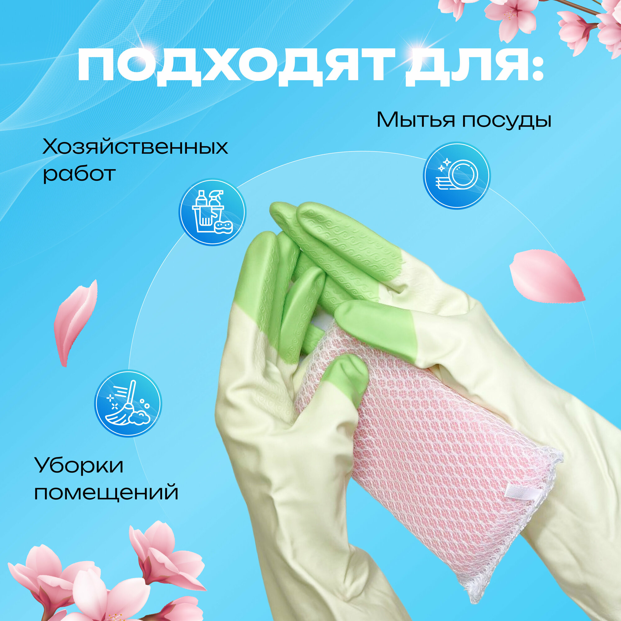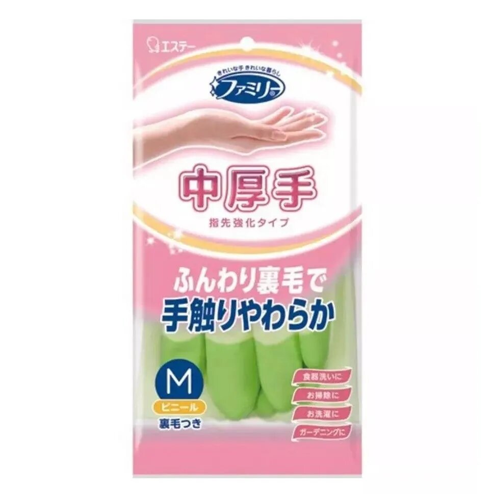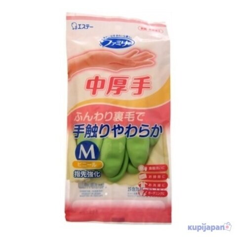 Купить ST Перчатки для бытовых и хозяйственных нужд ST Family с уплотнением в области кончиков пальцев, винил, средней толщины, размер M (зеленые), Япония