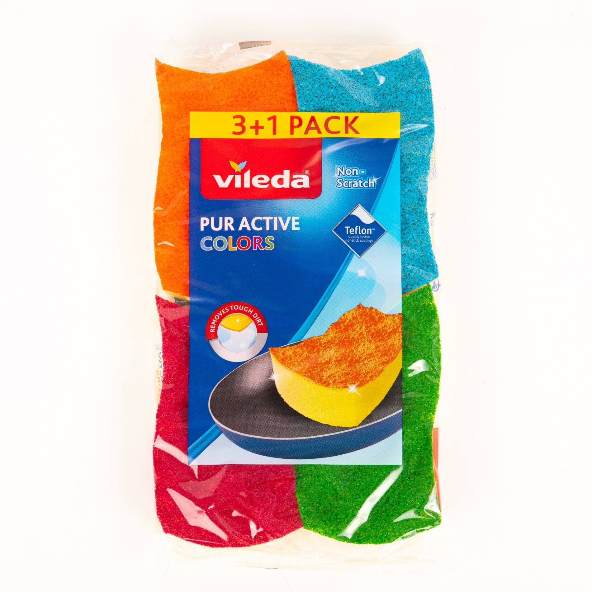 Купить Vileda PUR Active Colors Губки для тефлоновых покрытий 3+1 шт