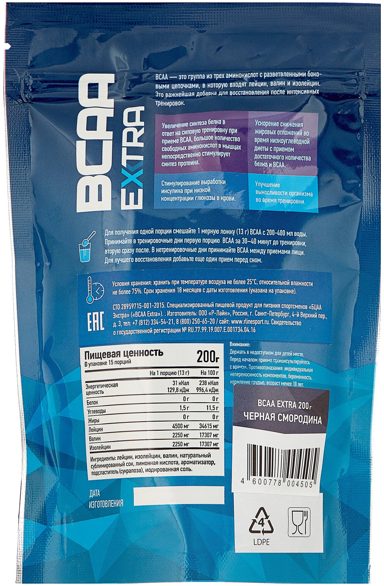 Аминокислоты БЦАА RLINE BCAA Extra 2:1:1, Черная смородина, 200 г