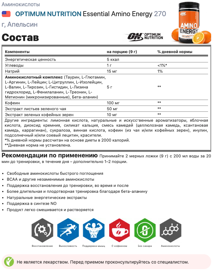 Ниже Вы можете прочитать отзывы на Аминокислоты OPTIMUM NUTRITION Essential Amino Energy 270 г, Апельсин, ознакомится с подробными характеристиками, посмотреть интересные обзоры и фотографии на Аминокислоты OPTIMUM NUTRITION Essential Amino Energy 270 г, Апельсин.