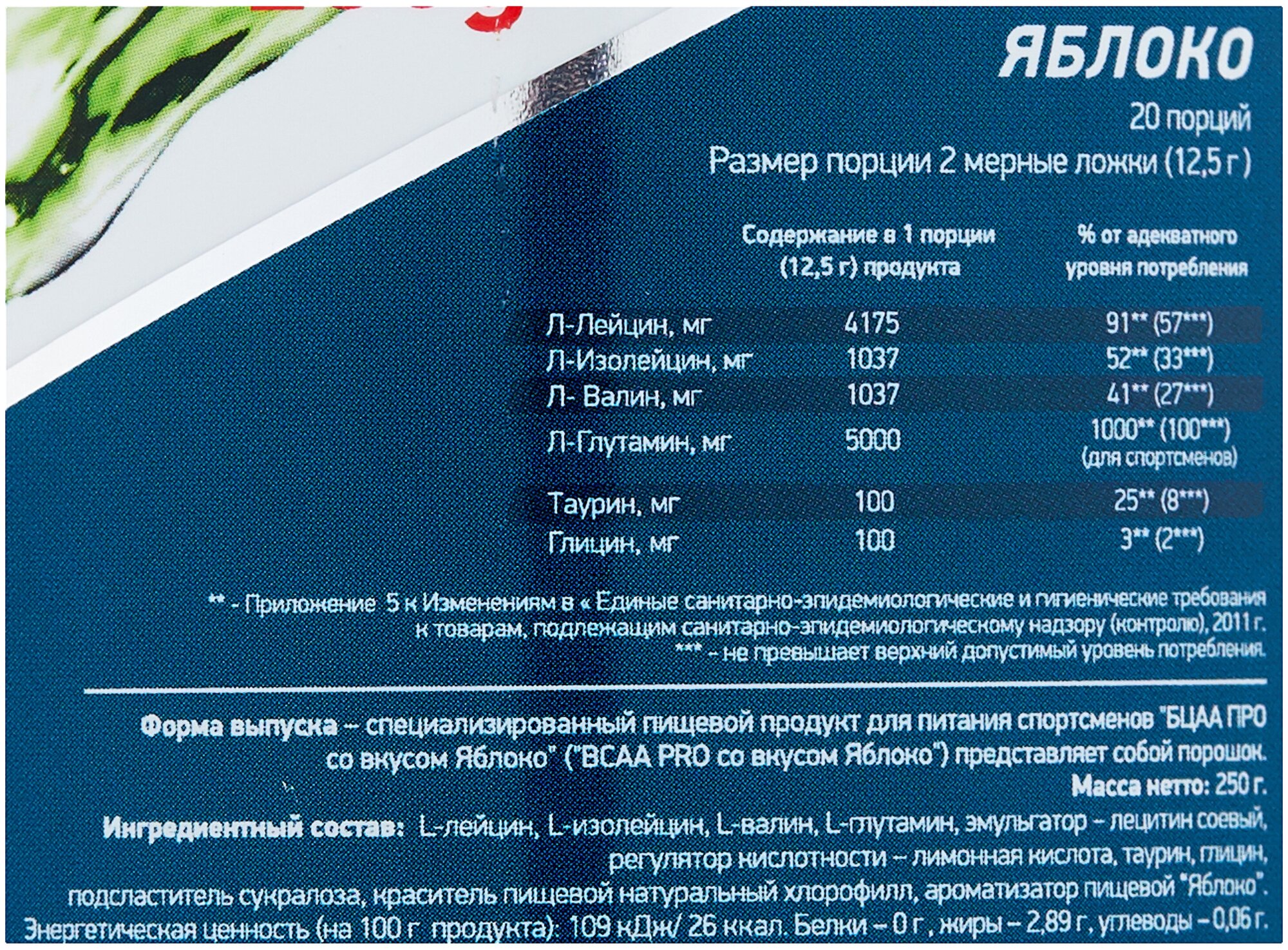 СохранитьАминокислоты BCAA PRO 250 g Яблоко интересное: