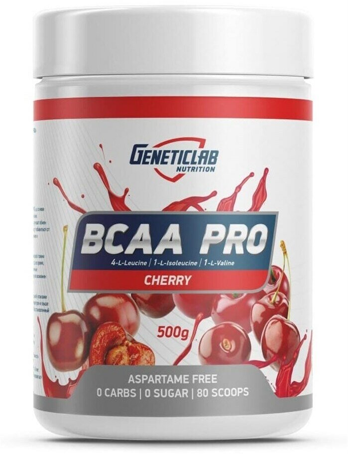 Аминокислоты BCAA (БЦАА), Geneticlab Nutrition, BCAA Pro, 500 г, Вишня