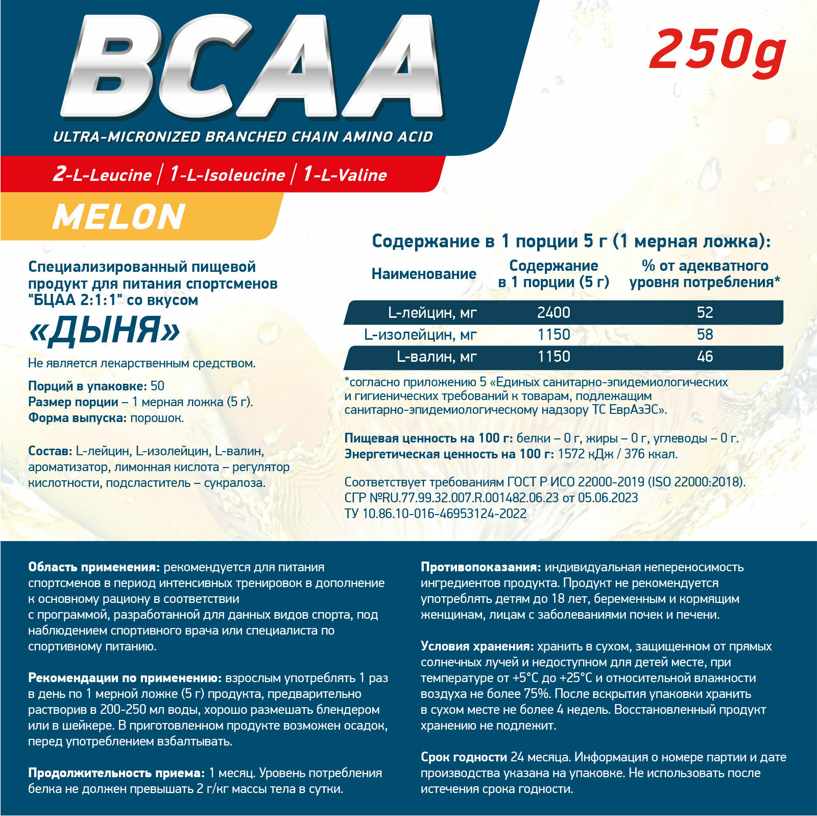 BCAA 2:1:1 250gr/50serv Melon (Дыня) /Аминокислота ДС