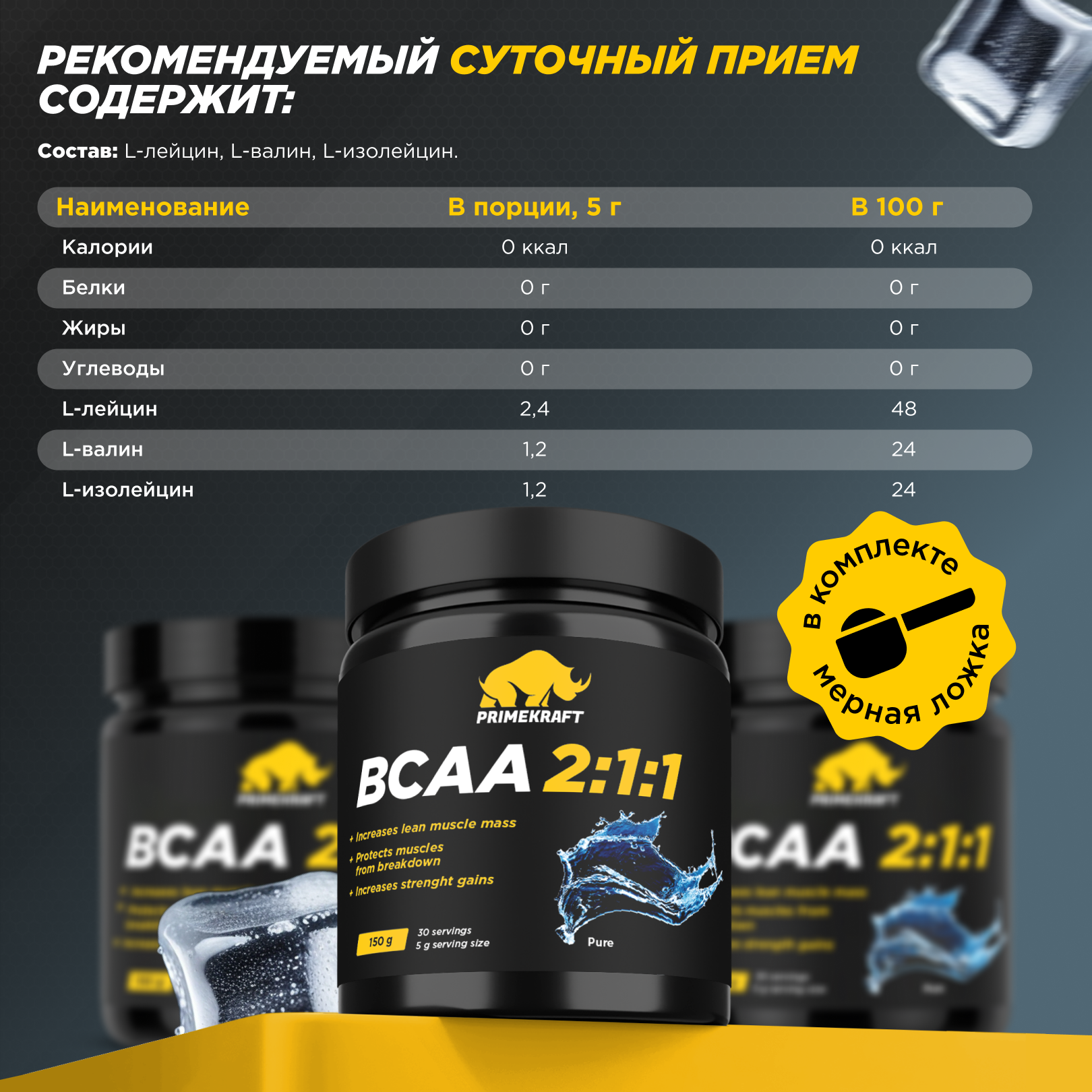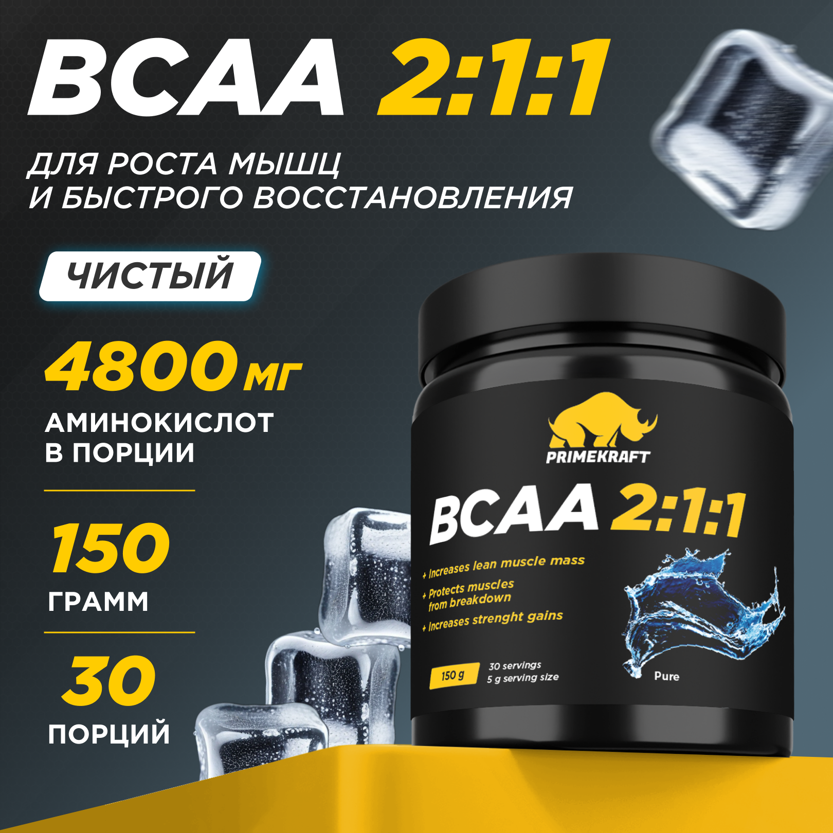 Купить Аминокислоты PRIMEKRAFT BCAA 2:1:1 (БЦАА) Чистый (Без вкуса), 150 г / 30 servings