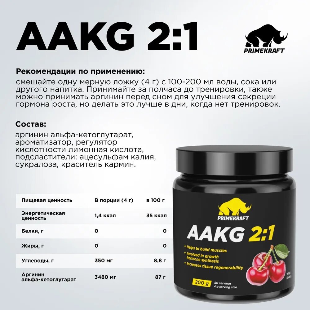 PrimeKraft AAKG 2:1, 200 грамм, Дикая Вишня