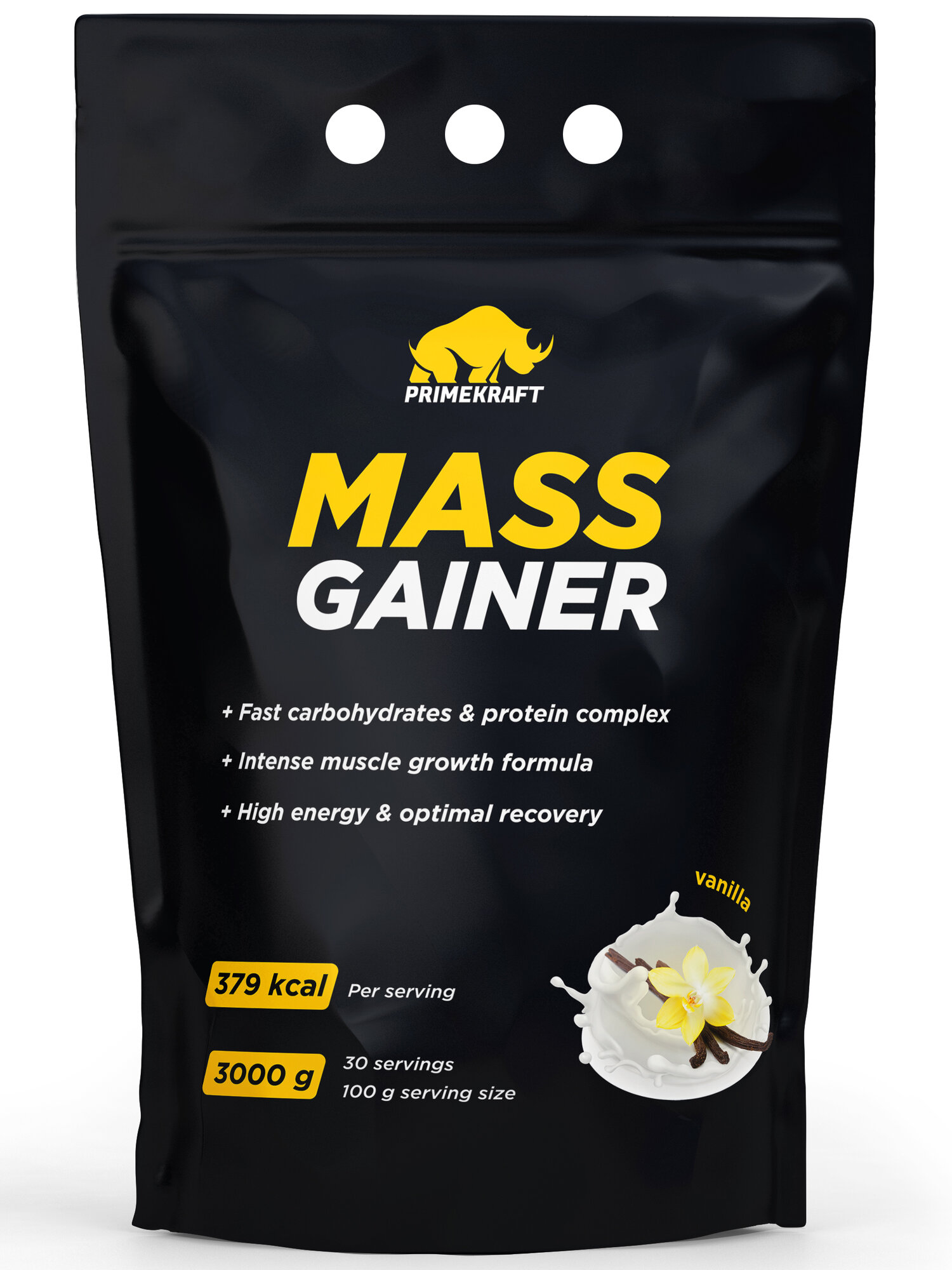 Гейнеры высокоуглеводные, Prime Kraft, Mass Gainer, 3000 г, Ваниль