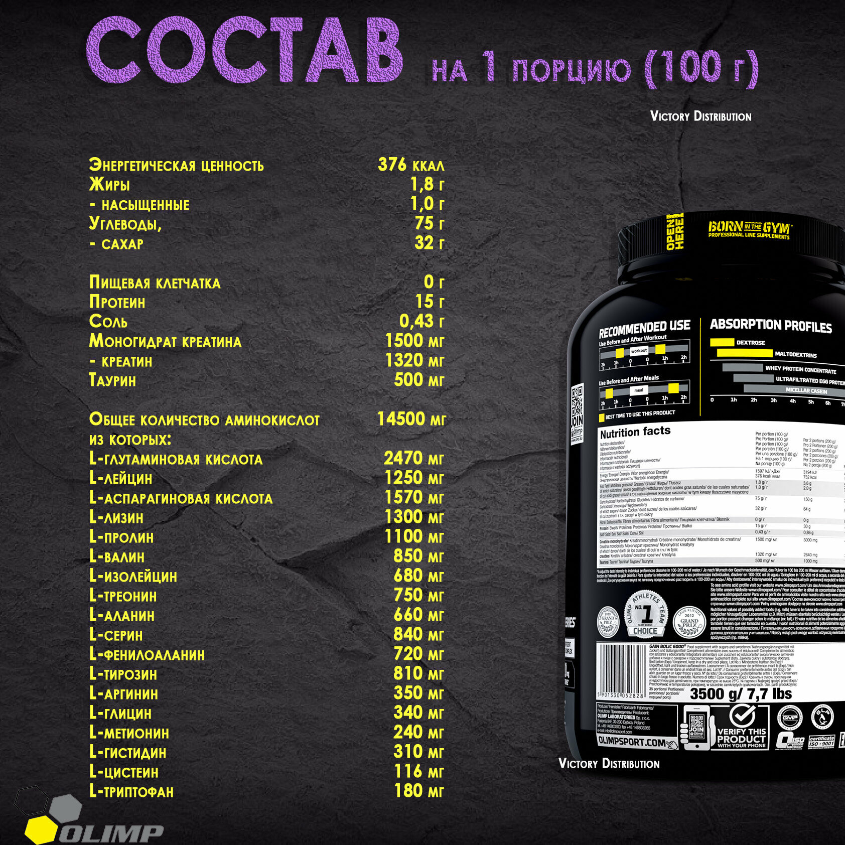 СохранитьOlimp Nutrition, Gain Bolic 6000, 3500 г (ванильный) интересное: