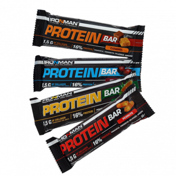 Купить Россия "IRONMAN" Батончик "Protein Bar" с коллагеном, 50 г (Карамель/ тёмная глазурь)