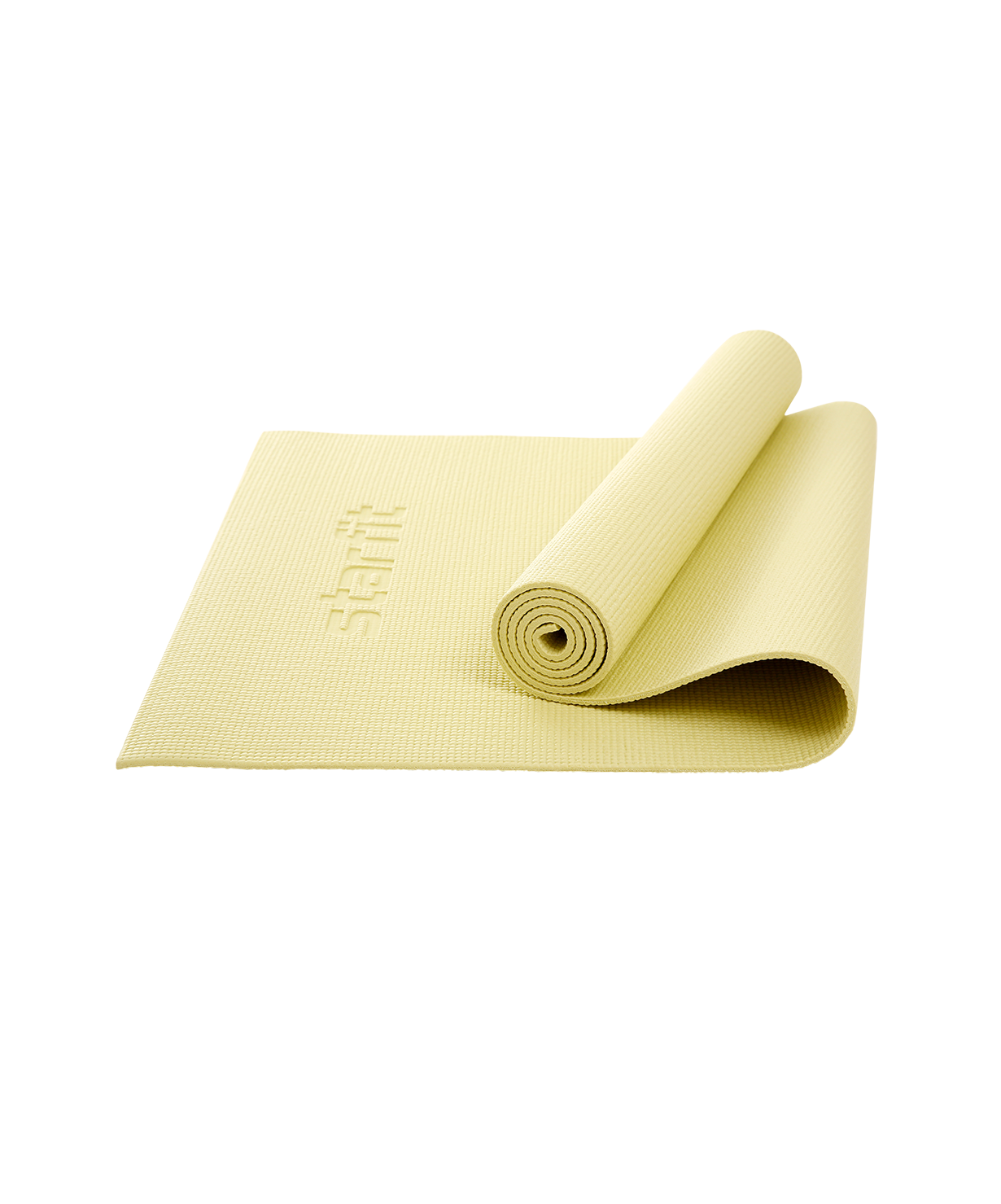 Коврик для йоги и фитнеса STARFIT FM-101 PVC, 0,6 см, 173x61 см, желтый пастель