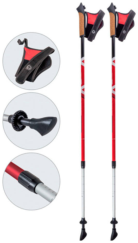 Палки для скандинавской ходьбы ECOS Nordic регулируемые 85-135 см, двухсекционные, алюминиевые, 1 пара, красные