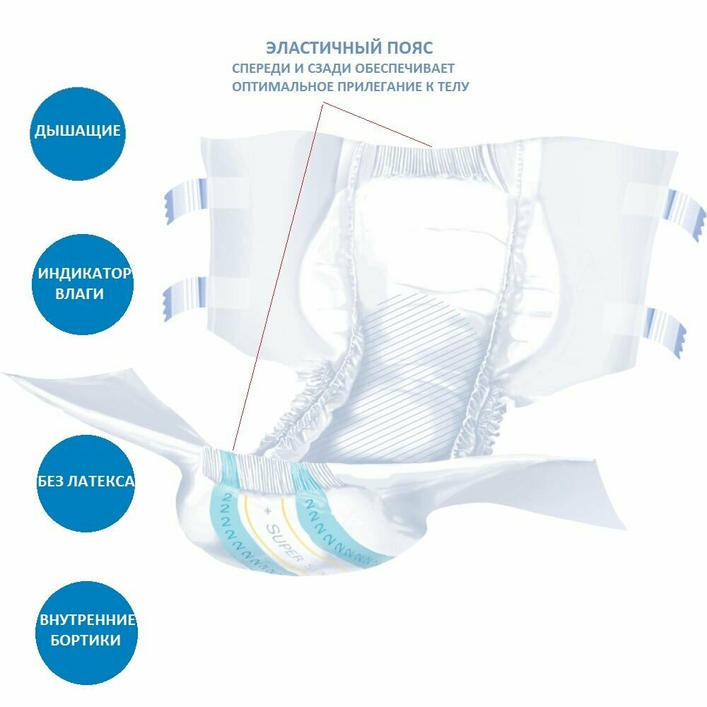 Подгузники для взрослых SENI super extra large, 30 шт, одноразовые (SE-094-XL30-JA1)