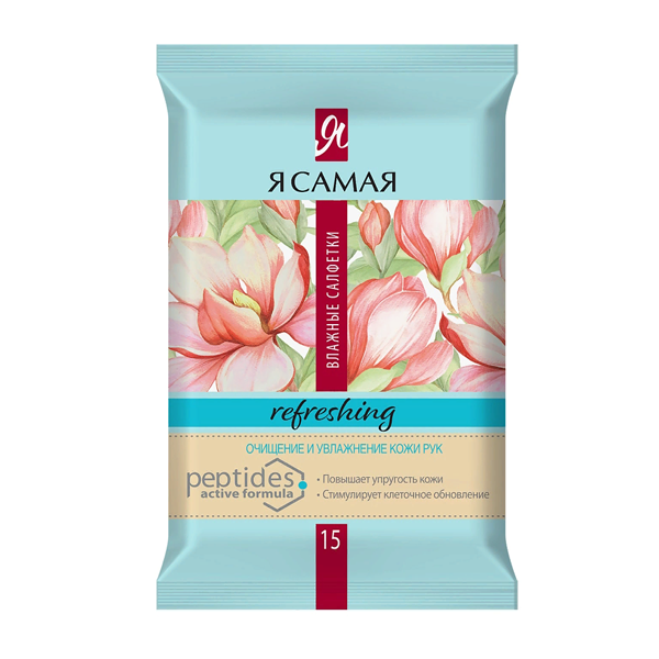 Я Самая Салфетки влажные освежающие очищение и питание кожи рук, 15 шт