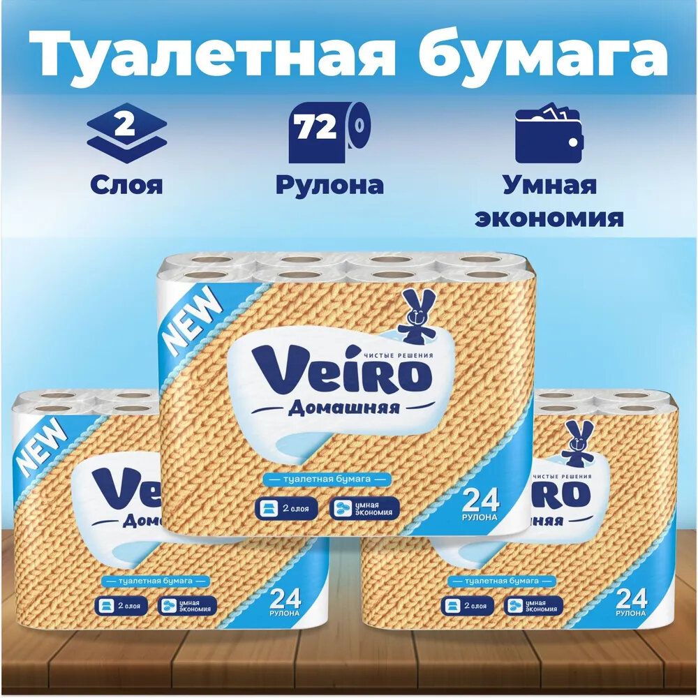 Купить Туалетная бумага Veiro Домашняя, 2-х слойная, 3уп Х 24 рулона, Веиро белая, 72 рулона