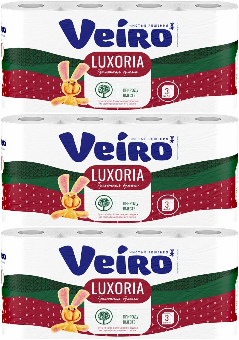 Veiro Туалетная бумага, "Люксория", 3 слоя, белая, 4 рулона