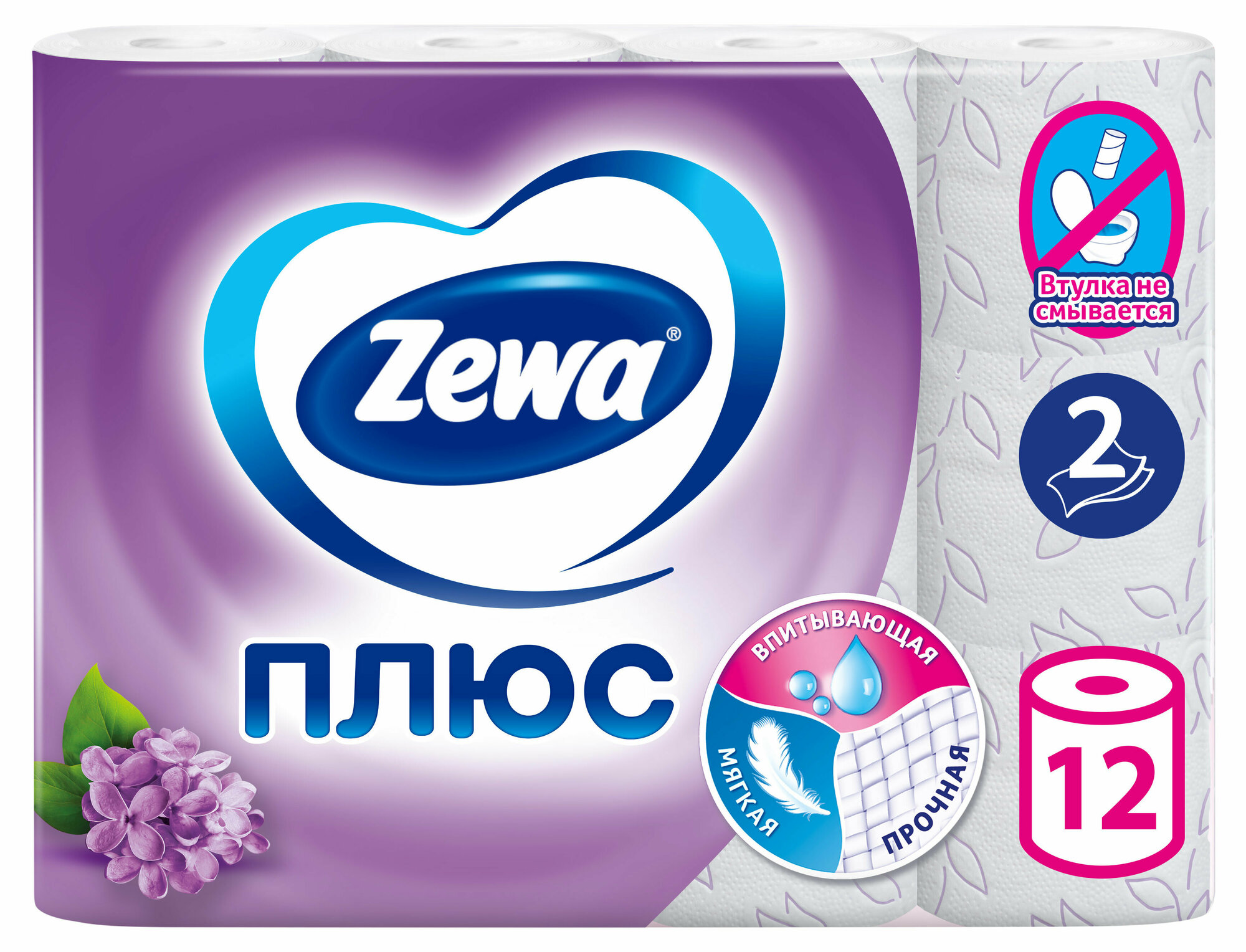 Туалетная бумага Zewa Плюс Сирень, 2 слоя, 12 рулонов
