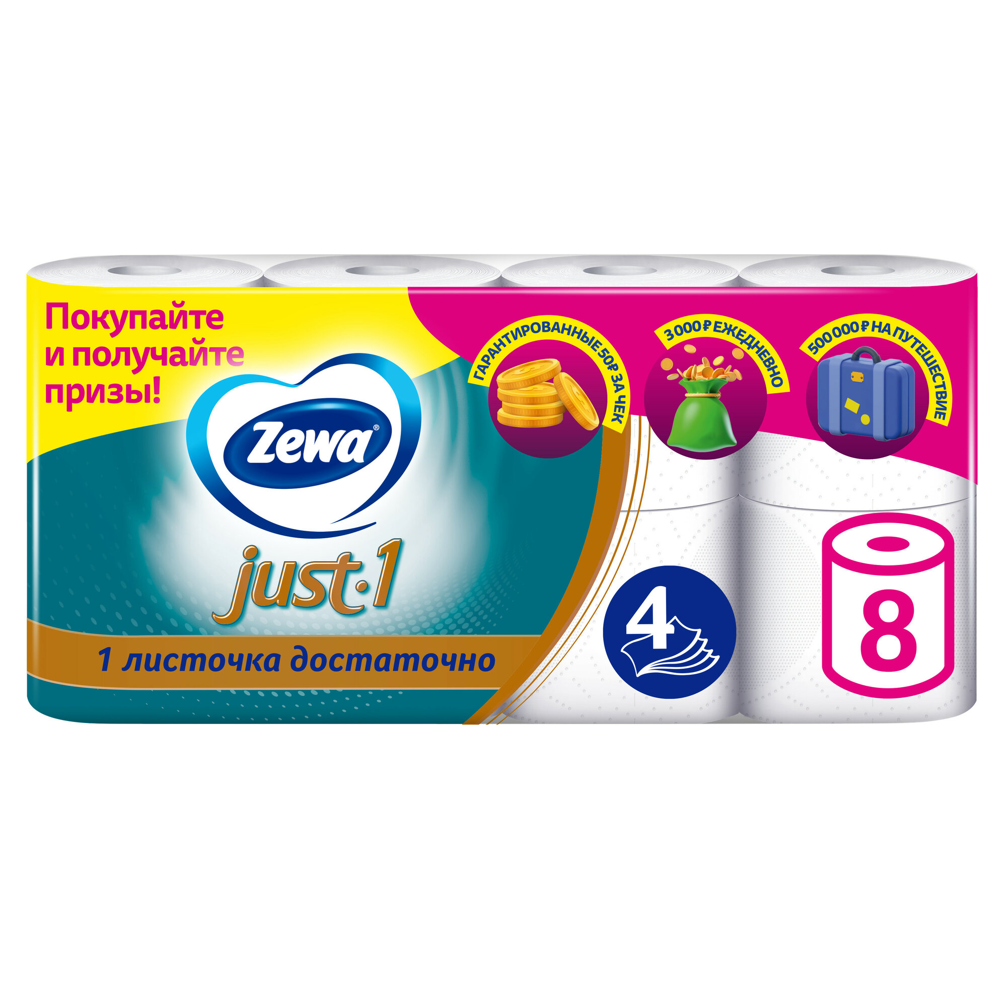 Туалетная бумага Zewa Just 1, 4 слоя, 8 рулонов
